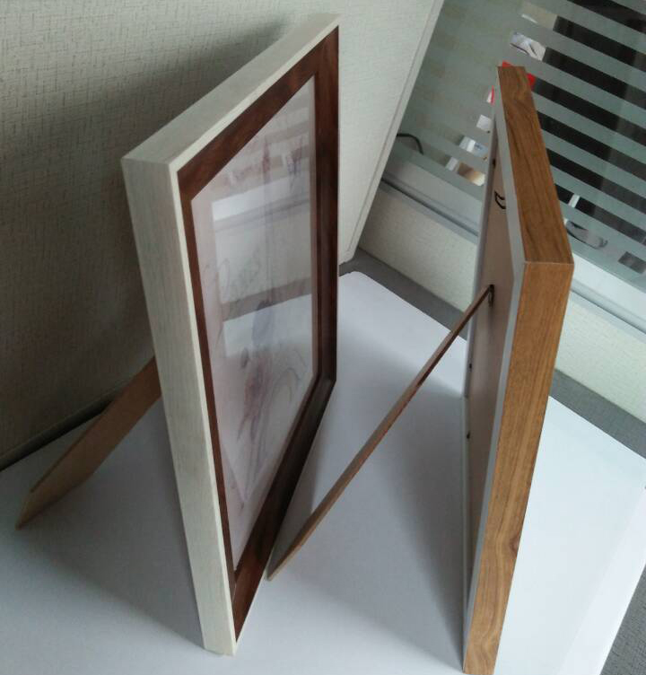 摆台款式,其实是摆台和挂墙2用的,既可以摆台,也可以挂墙使用,超过14寸的相框,全部是是第二种挂式的,只能挂墙使用的,